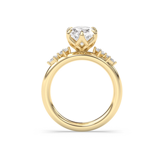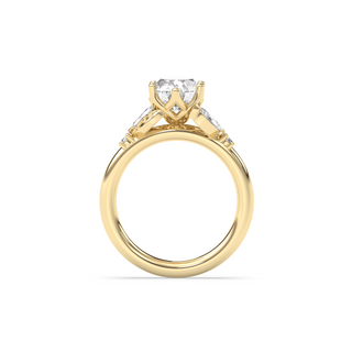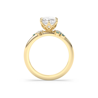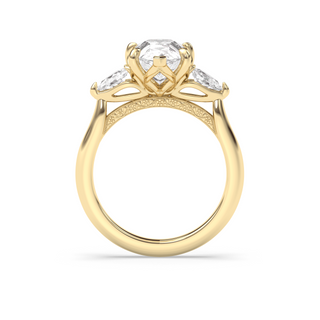 Rose Ring, Latticework Petal Prongs™, Australian Teal Sapphire Leaves, Oval Cut