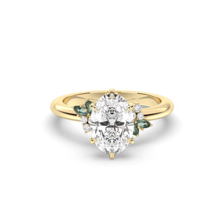 Rose Ring, Latticework Petal Prongs™, Australian Teal Sapphire Leaves, Oval Cut