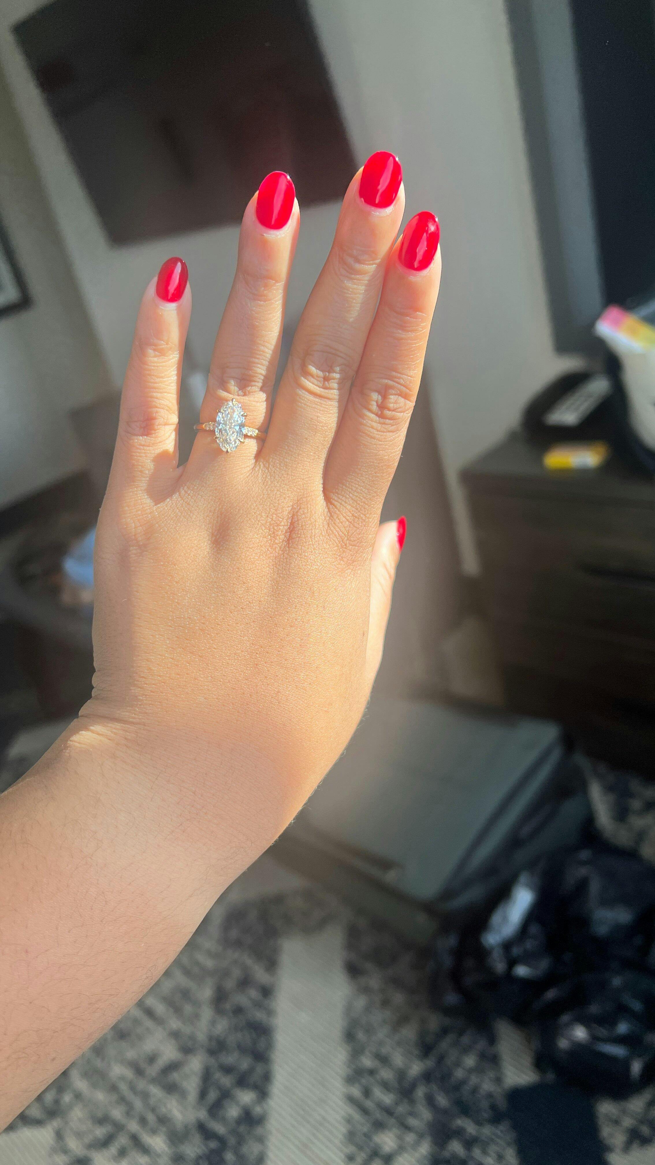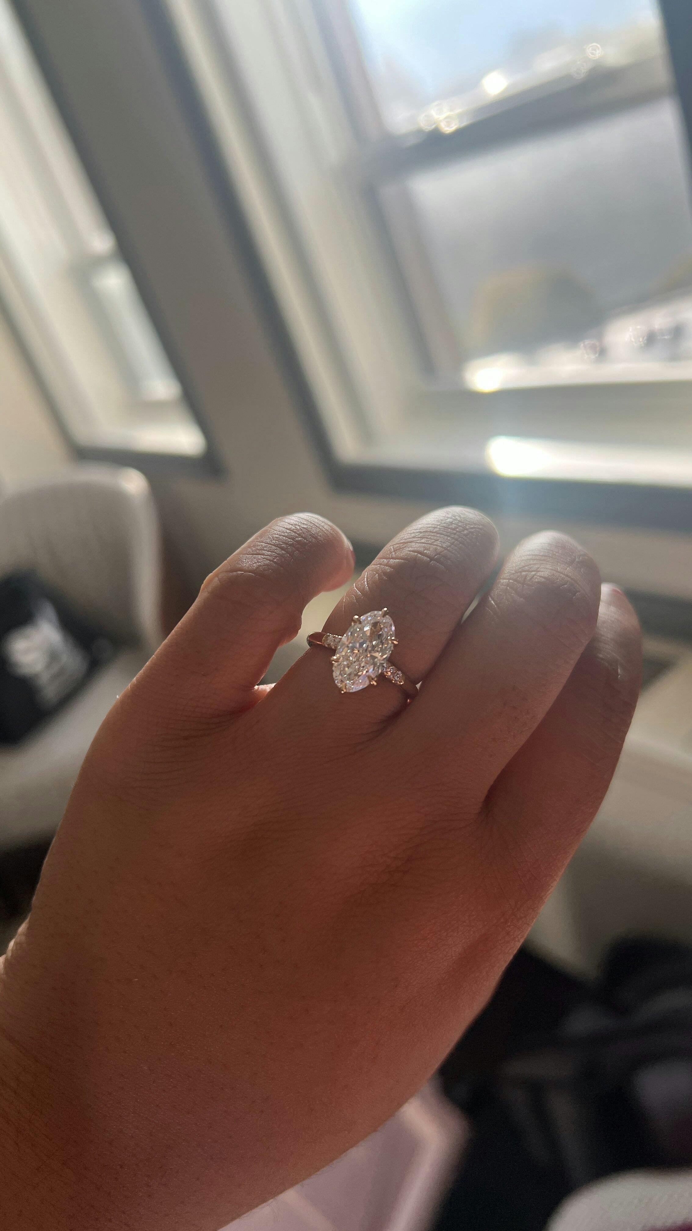 All of our ring purchases include an expert curation service where our founder and diamond expert, Michelle, hand selects the ideal diamond to ensure that it meets the highest standards for excellence. The diamond is selected for the exact setting that it is going into, with regards to a multitude of factors including but not limited to: the diamond cuts proportions, the number of prongs, prong placement, setting style, ring size, band width, and the presence or absence of side stones. Our stones are always custom cut in very strict balanced ratios; if you have specific diamond requirements you'd like to have met, please reach out to us via email!