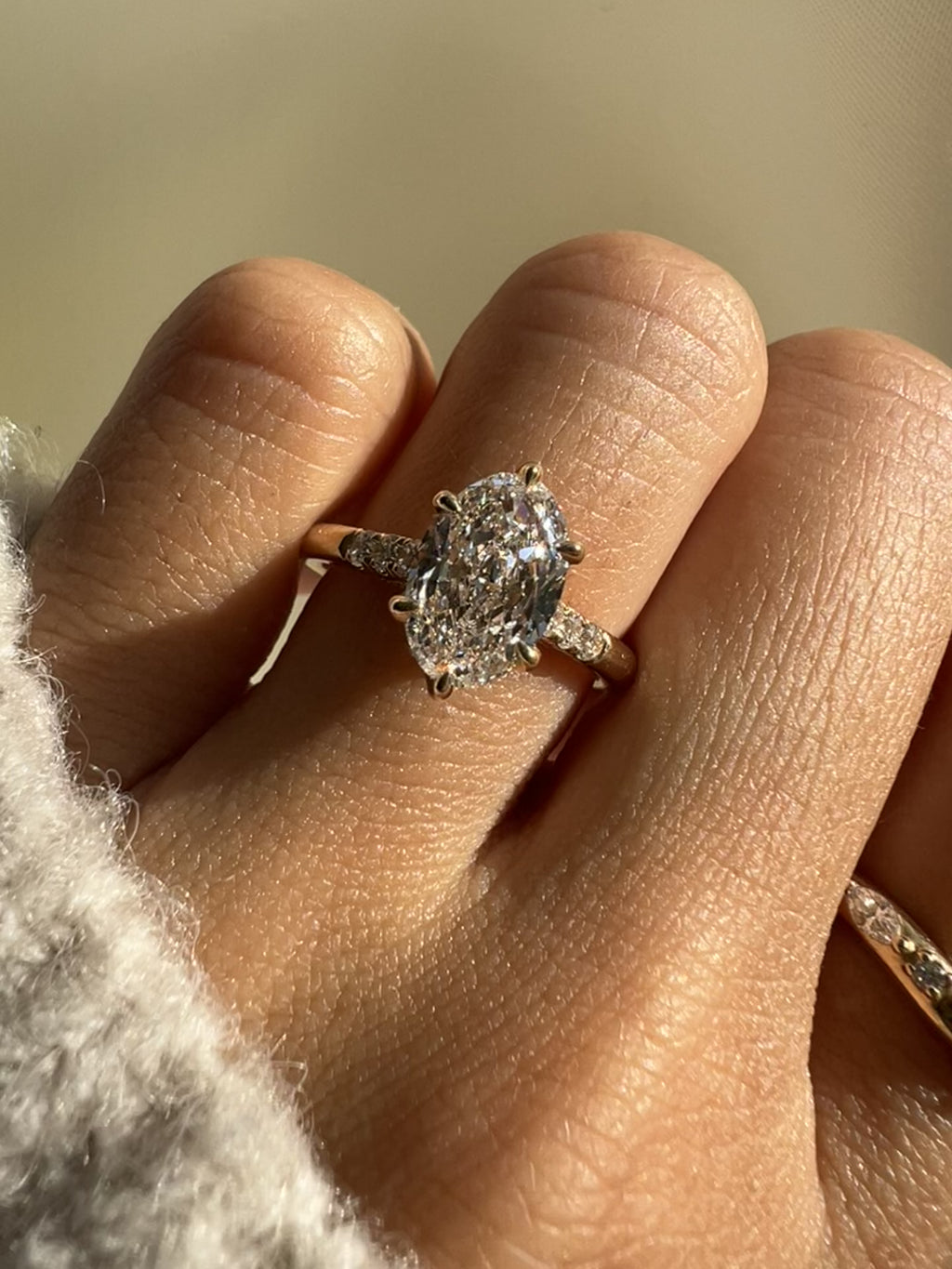 Pavè stones in rings with a moissanite center stone are moissanite by default.
