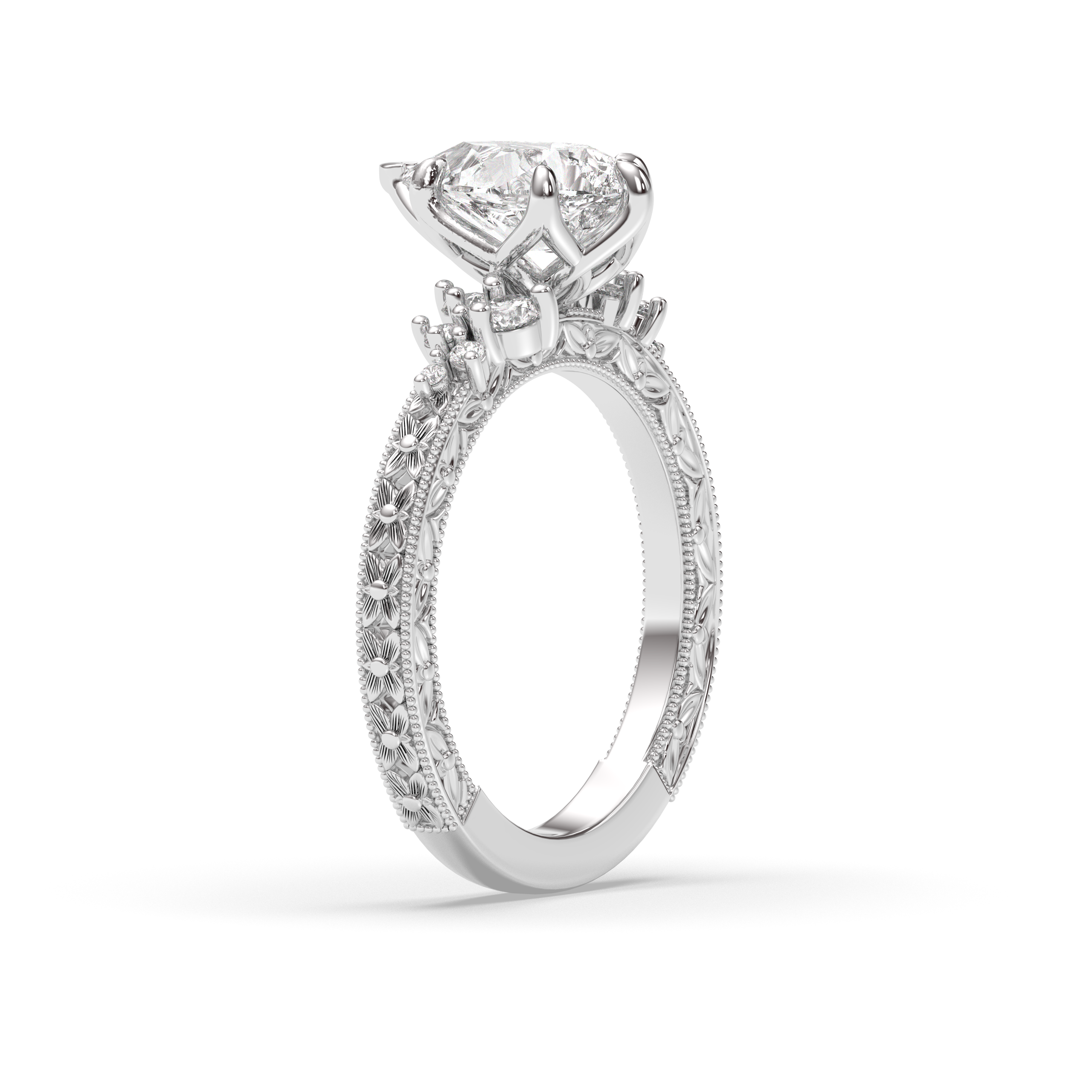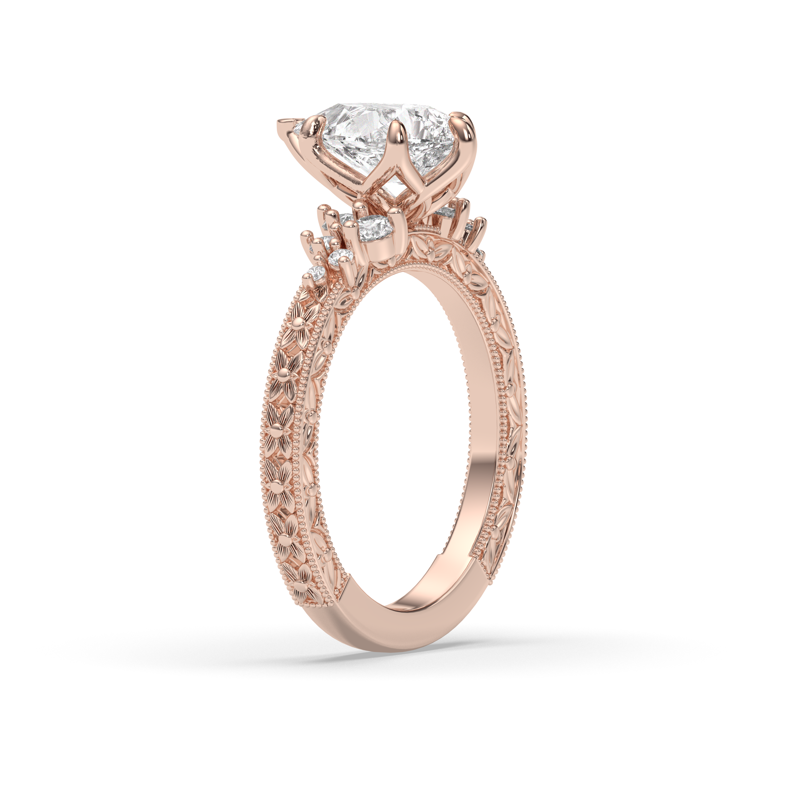All of our ring purchases include an expert curation service where our founder and diamond expert, Michelle, hand selects the ideal diamond to ensure that it meets the highest standards for excellence. The diamond is selected for the exact setting that it is going into, with regards to a multitude of factors including but not limited to: the diamond cuts proportions, the number of prongs, prong placement, setting style, ring size, band width, and the presence or absence of side stones. Our stones are always custom cut in very strict balanced ratios; if you have specific diamond requirements you'd like to have met, please reach out to us via email!