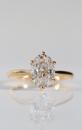 The vast majority of oval diamonds on the market are cut with 58 facets (57 if there is no culet facet) that are modeled directly after the faceting of the traditional round brilliant.