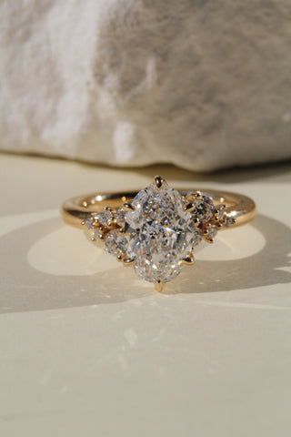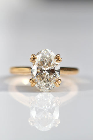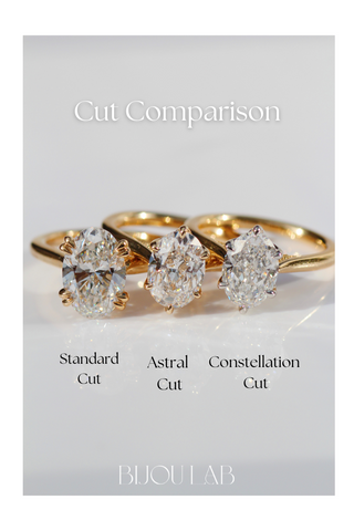 At Bijou Lab, our oval, marquise and pear diamonds are custom cut for us in select faceting patterns that minimize or completely eliminate the bow-tie effect that is associated with the standard elongated brilliant cut.