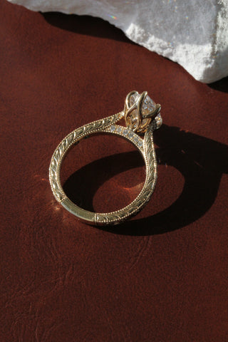 This ring also features our brand's signature Vintage Pave Bridge; an ode to both the old and the new, a dual-sided sparkling arch of hidden diamonds with an enchanting milgrain border to add a touch of vintage beauty underneath.
